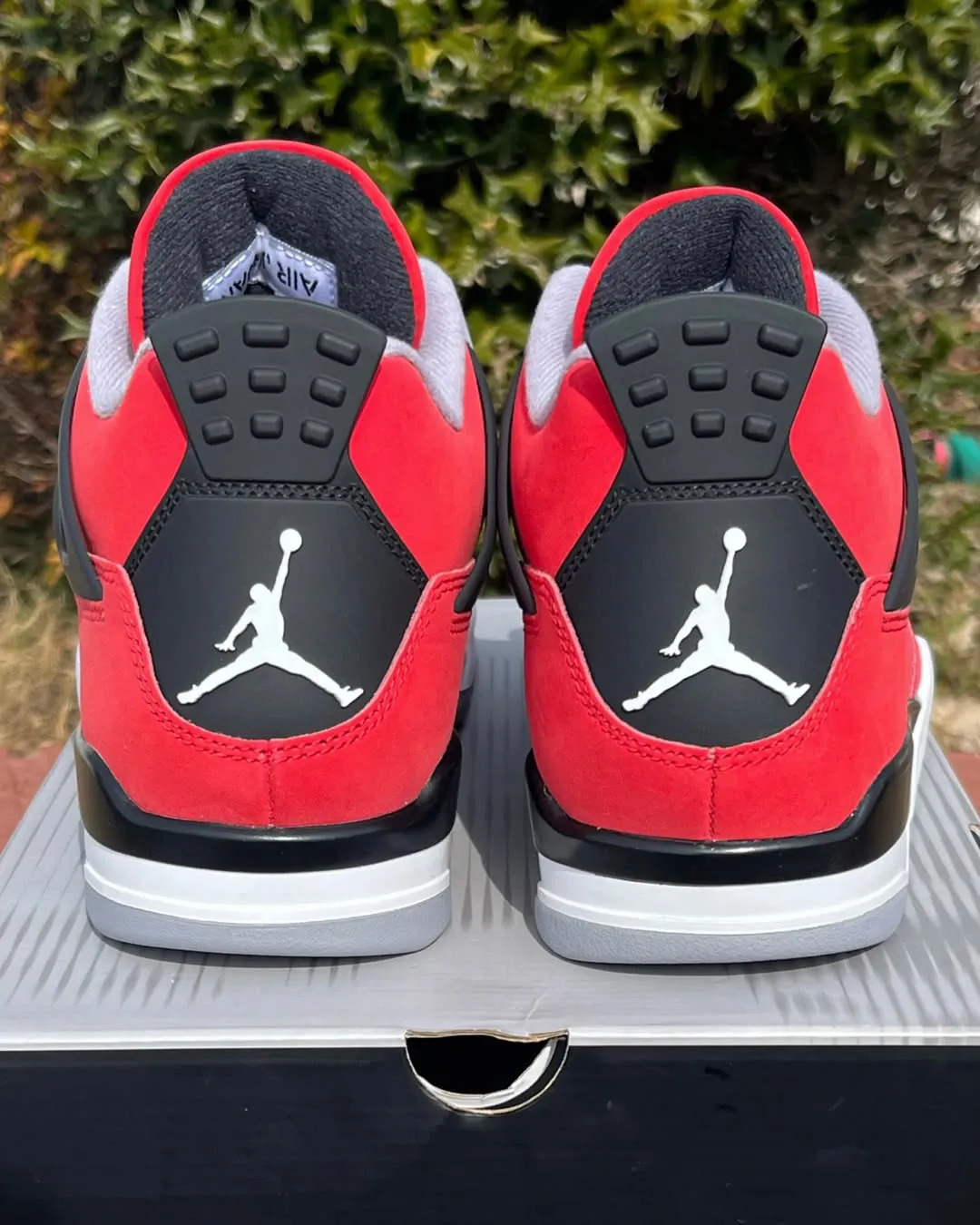 As was the case with its 2013 progenitor, they feature a red nubuck upper with black baked netting on the sides as well as the tongue. Perched atop the cement grey tongue label is a white Jumpman, with additional such branding on the rear heel. Cement grey also shows up on the ends of the lace tabs as well as the inner.