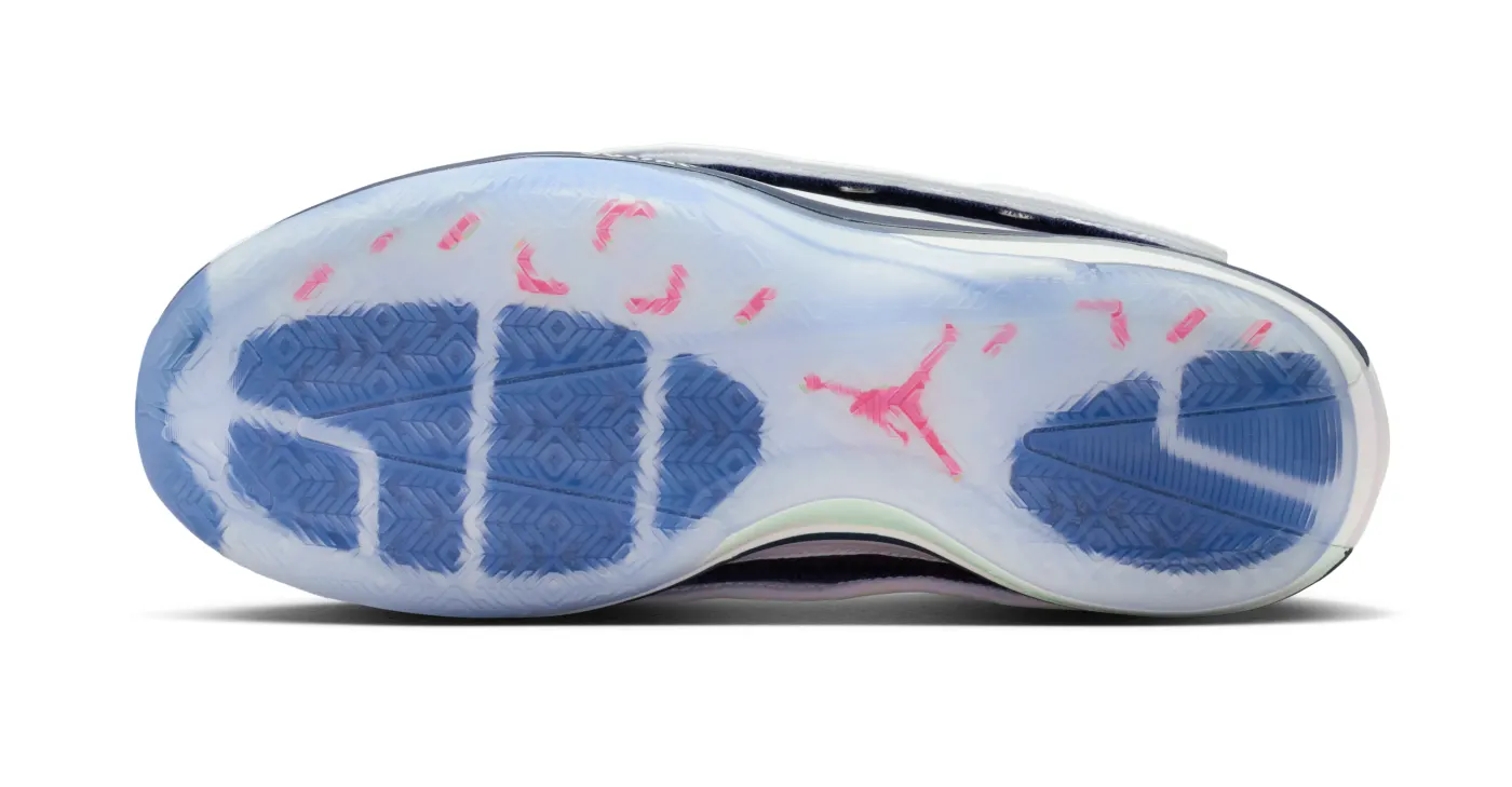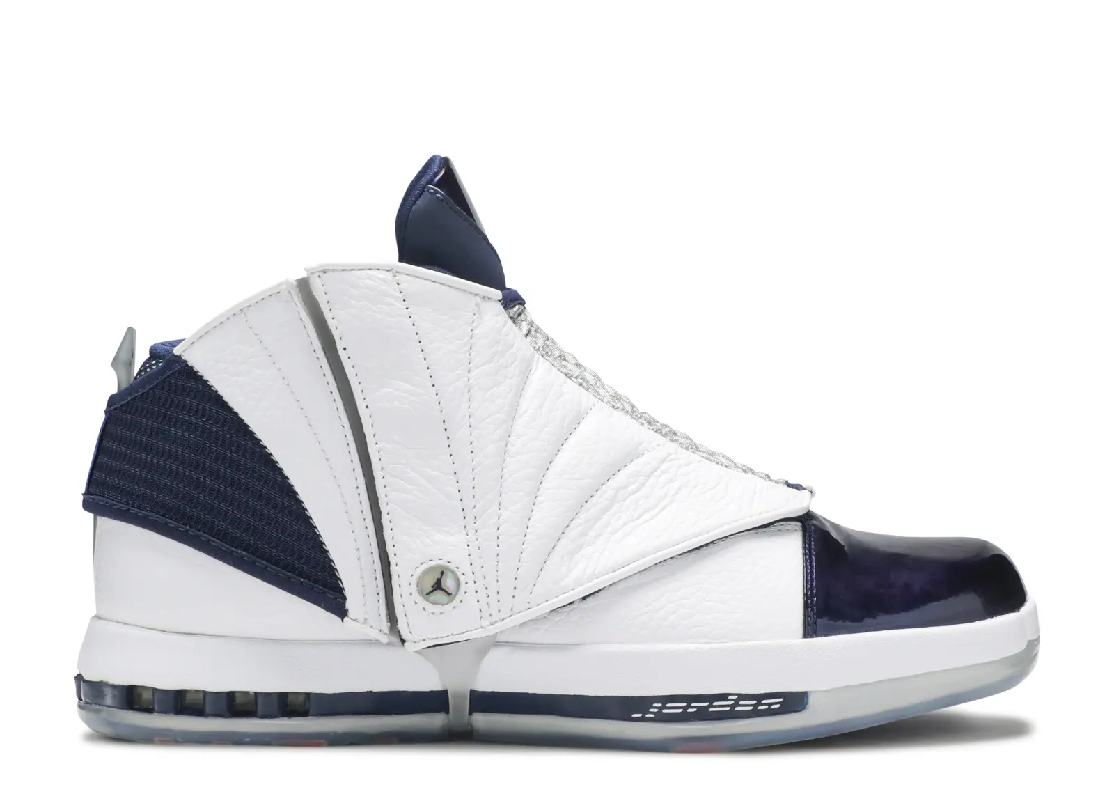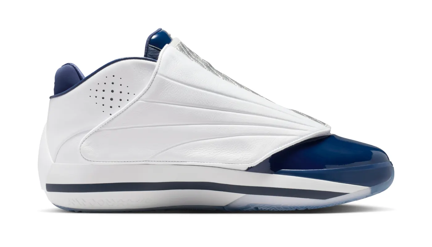 The classic white and navy color scheme of the Air Jordan XVI inspires this iteration of the Air Jordan XL.