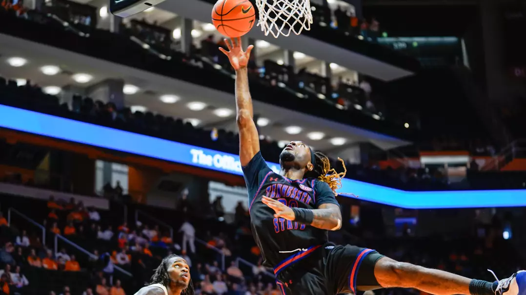Tennessee State trimmed Asheville’s lead to 42-40 on Travis Harper II’s alley-oop at the 17:41 mark of the second half. An 11-2 spurt by the Bulldogs over the next 5 minutes ballooned UNCA’s lead to 53-42 with 12:41 remaining. TSU responded with an 11-0 run of their own, tying the game at 53 on Kaviien Taylor’s jumper at the 9:08 mark. The contest would be locked again at 55 before Tennessee State took their first lead since 12-10 at 12:06 of the first half. The contest would see ties at 57, and 62 apiece. The ballclub exchanged the lead 2 more times before Tennessee State took a 64-63 lead on Travis Harper II’s layup with 3:46 left in the contest. TSU extended its lead to 72-67 with just 1:07 remaining in the contest, setting the stage for the aforementioned late-game fireworks.